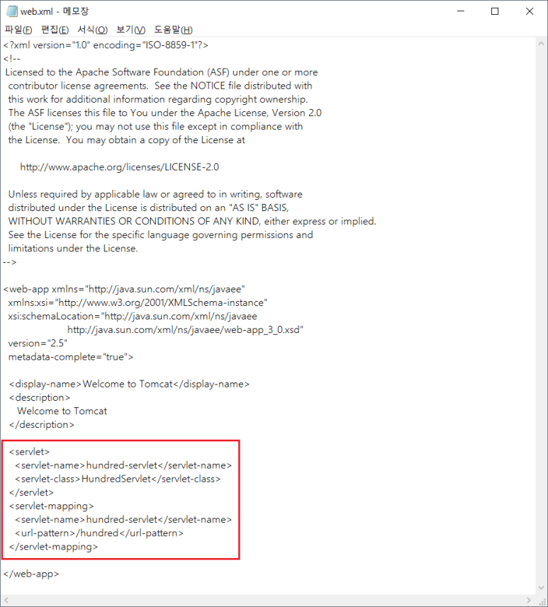 2. ) <web-app> </web-app> 태그 안에만 아래처럼 코드 넣어주면 됨